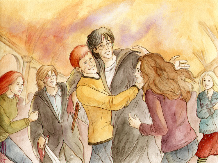 pomknęła jak szalona, ukazując mu scenę, w której Ginny, szlochając nad jego nieruchomym ciałem, wyznaje, że się w nim zakochała, a Ron udziela im swego błogosławieństwa ...