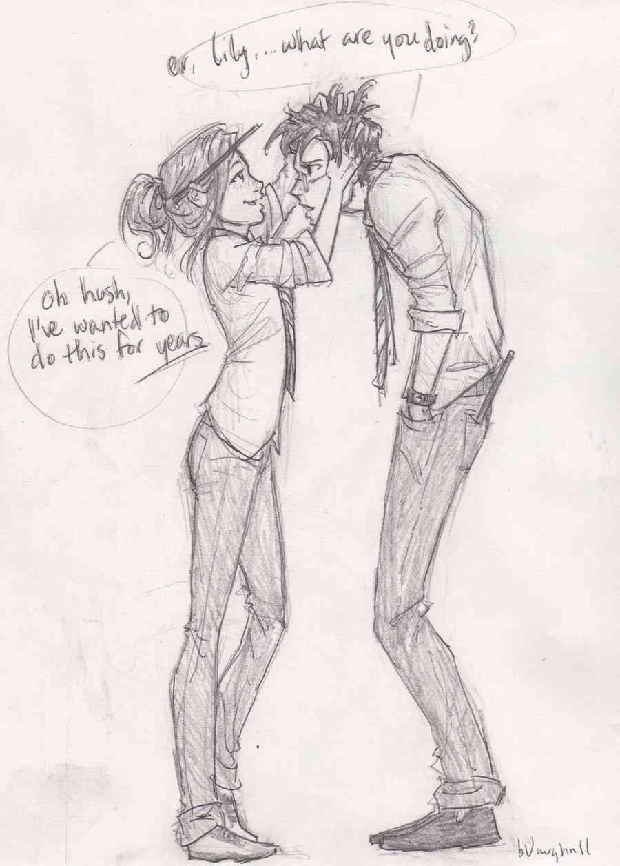 Nie wiem dlaczego, ale strasznie mi się ten obrazek podoba. I sama scenka, i wykonanie. No i przede wszystkim, w przeciwieństwie do wersji filmowych, Lily i James wyglądają na swoje lata, a nie jak ludzie pod czterdziestkę
