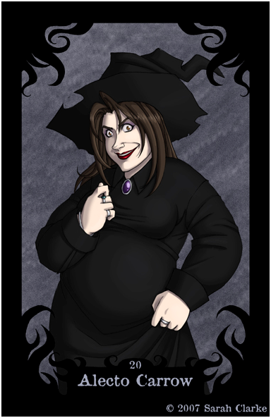 W szóstym tomie Harry'ego Pottera, Alecto wraz ze swoim bratem brała udział w napadzie na Hogwart. UWAGA: Poniższy fragment zawiera Spoiler!