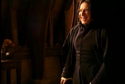 Śmiejący się Snape? Raczej niecodzienny widok^^ <zapewne przerwa na planie, bo takiego Severusa w filmach na pewno nie było>