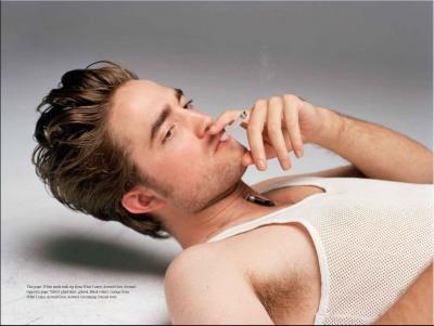 Podkoszulek z siateczkowego materiału sprawia wrażenie, że jest żulem (wg mnie). Ten papieros i ogólnie pozycja to nie. Zdjęcie warte polecenia wszystkim fankom Roba. ;d