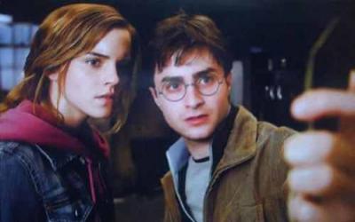 Harry i Hermiona patrzący w dwukierunkowe lusterko od Syriusza